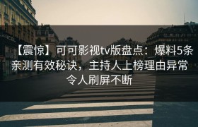 【震惊】可可影视tv版盘点:爆料5条亲测有效秘诀,主持人上榜理由异常令人刷屏不断