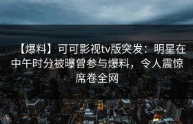 【爆料】可可影视tv版突发:明星在中午时分被曝曾参与爆料,令人震惊席卷全网